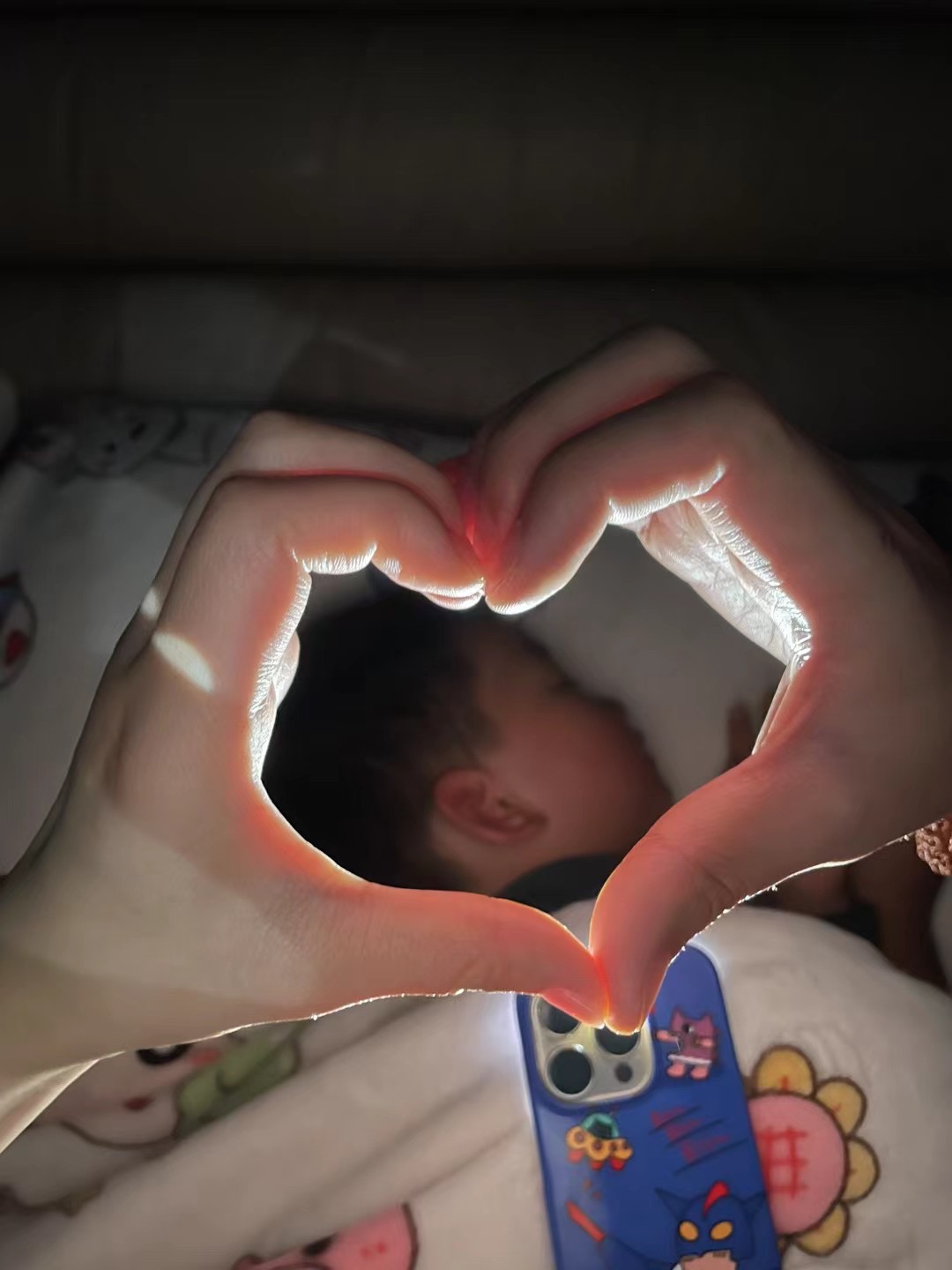妈妈的双手轻轻比成爱心的形状,温柔地将自己熟睡的宝宝框在其中。这简单的动作,却饱含着无尽的深情与温柔。 这张照片是对母爱的深情诠释。宝宝在手势爱心的环绕下安然沉睡,恰似被妈妈的爱全方位包裹。妈妈的手,就像一座温暖的港湾,为宝宝遮风挡雨,给予无尽的安全感。它是一个美好瞬间的珍贵定格。宝宝安静熟睡的模样,是那样纯真可爱,妈妈用这种充满创意的方式记录下来,让这份温馨永远留存。这不仅是对当下幸福时刻的铭记,更是对未来回忆的一份珍藏。同时,它还能引发人们内心深处对亲情的共鸣,传递出家庭中那份至纯至真的爱。 它的独特之处,在于别具匠心的构图。没有平铺直叙地展现宝宝,而是以双手比心这种别出心裁的方式,将母爱具象化,让爱有了形状,赋予画面丰富的层次感与艺术感。柔和的光线勾勒出手的轮廓,营造出静谧而温馨的氛围,让宝宝的睡颜更显宁静美好,进一步升华了画面中蕴含的深情。这是母爱与创意的完美融合,是情感与艺术的交织绽放。